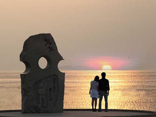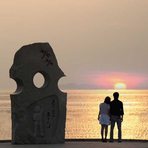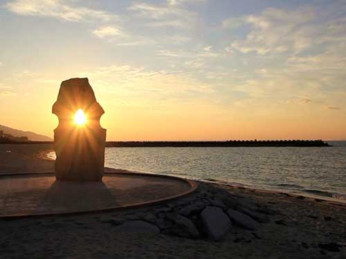 地域の中でも、夕日が最も美しく見えるスポットとして有名なのが、ここふたみシーサイド公園(道の駅ふたみ)です。